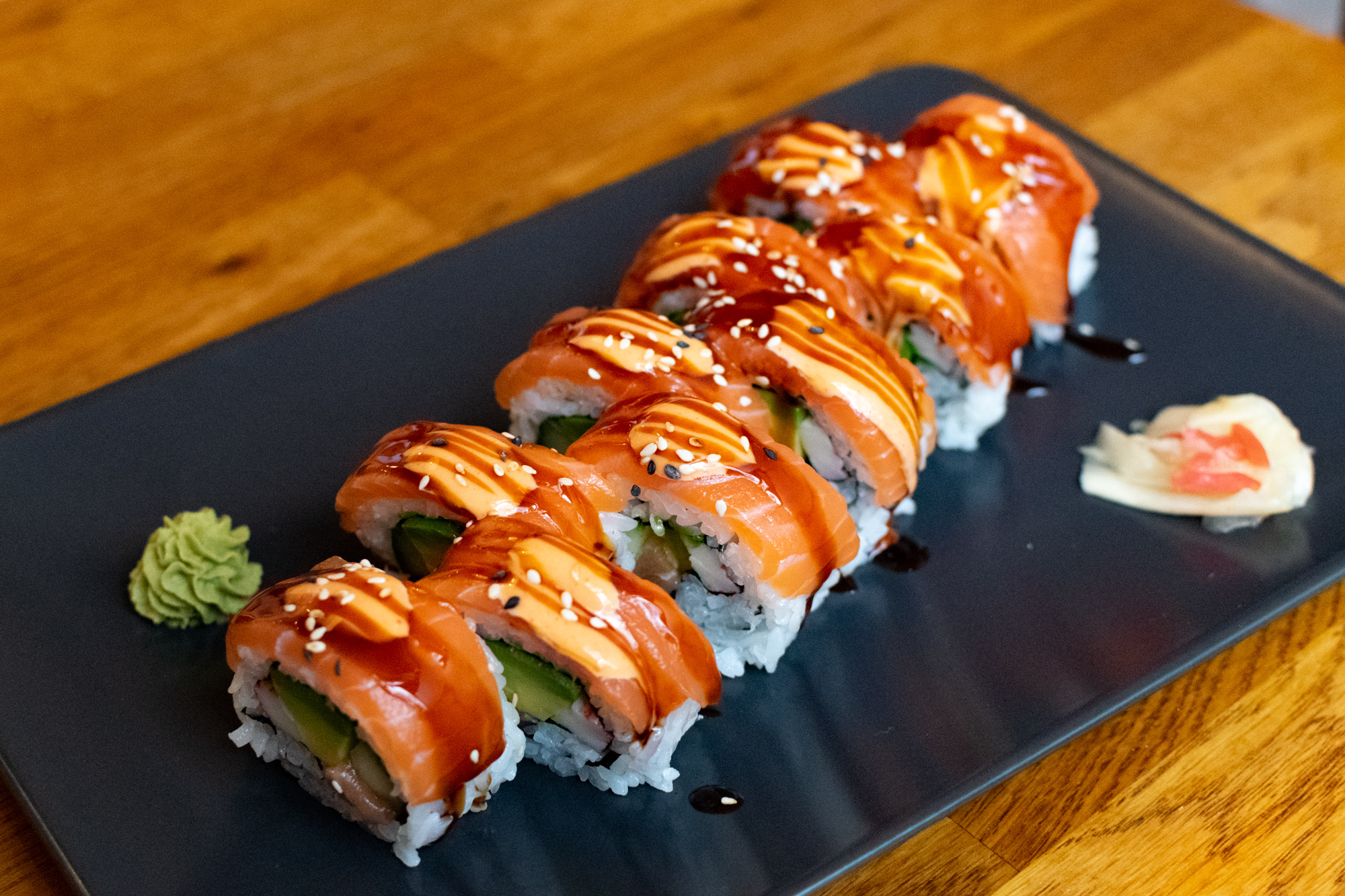 | 25 | Halstrad Lax Roll | Rulle i 10 bitar med: Avokado, gurka, surimi Toppping: halstrad lax, sesamfrön, rostad lök, salladslök, teriyakisås, chilimajo, tryffelmajo |